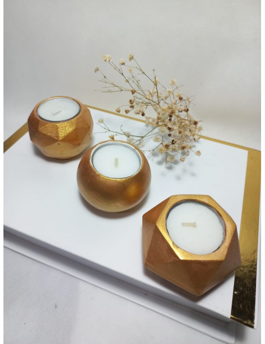 Geometrik Mumluklar: Tealight mumlar için tasarlanan yuvarlak, çokgen ve oluklu mumluk modelleri, akşamları huzurlu bir ambiyans sağlar.