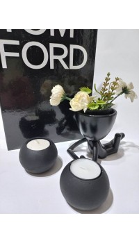VİDA VAZO TABAKLI MUMLUK SET SİYAH