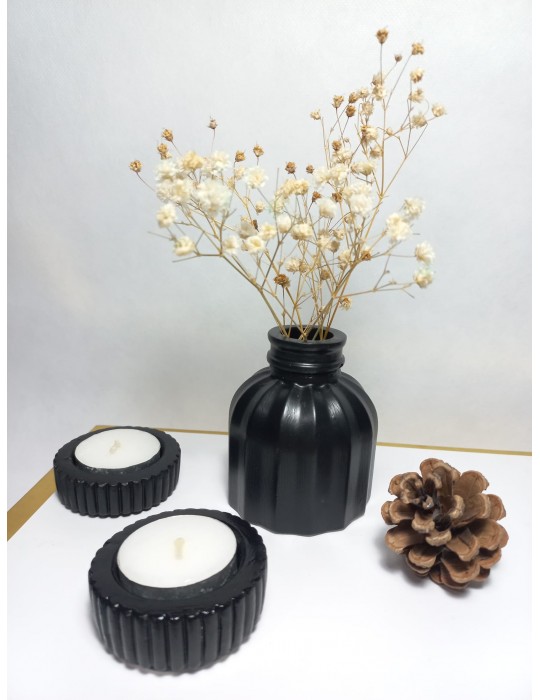 BALON VAZO İKİLİ MUMLUK SET SİYAH