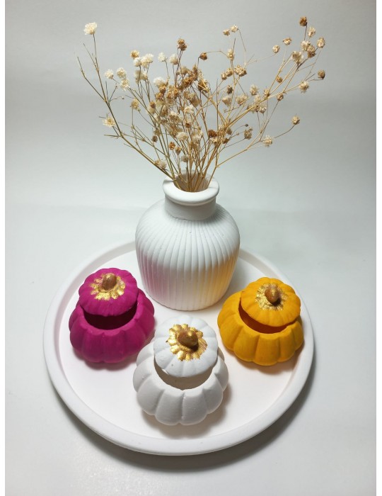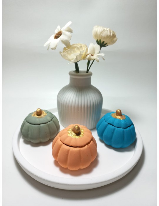 Bu set, farklı boyut/formdaki bal kabağı görünümlü vazodan oluşur ve tek tek kullanıldığında bile uyumlu bir görsel ziyafet sunar. Sonbahar, kış ve doğal temalı dekorasyonlar için vazgeçilmez bir parçadır. Ürün ölçüleri , en x boy x yükseklik kabak 5x5x3 cm dir.