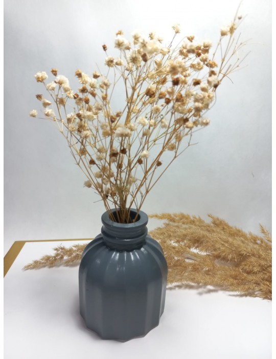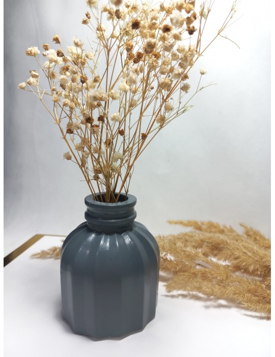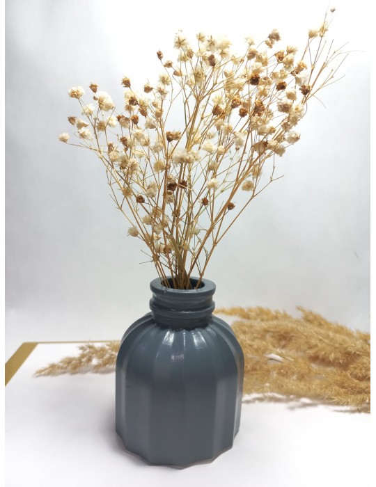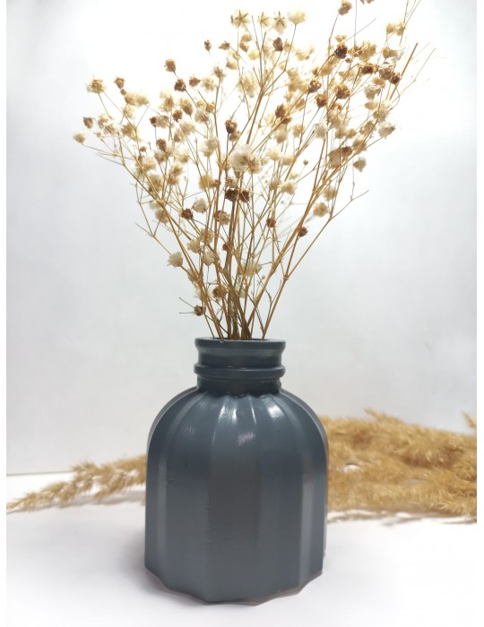 Bu vazo, özellikle salon ve ofis alanları için tasarlanmış olup, yüzeyindeki yumuşak, dikey çizgi detayları (fitilli/oluklu görünüm) sayesinde ona dokunsal bir zenginlik ve heykelsi bir derinlik katar. Gri'nin sakinliği, modern çizgilerle buluşur ve bulunduğu her ortamın estetik seviyesini yükseltir.