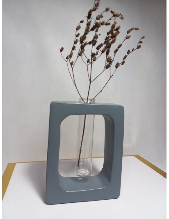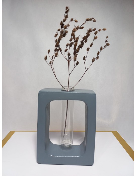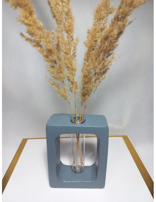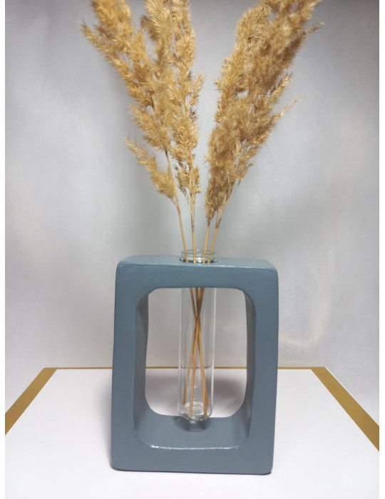 Kuru Çiçeklik Vazo,Gri ( Dikdörtgen Model ) Cam Tüplü Dekoratif Vazo